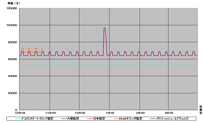 オランダ、アムステルダム行き航空券が安い時期がわかる便利な相場チャート。2015下期価格推移グラフでいつが安いか確認できます。