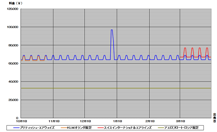 スペイン、バルセロナ行き航空券が安い時期がわかる便利な相場チャート。2015下期価格推移グラフでいつが安いか確認できます。