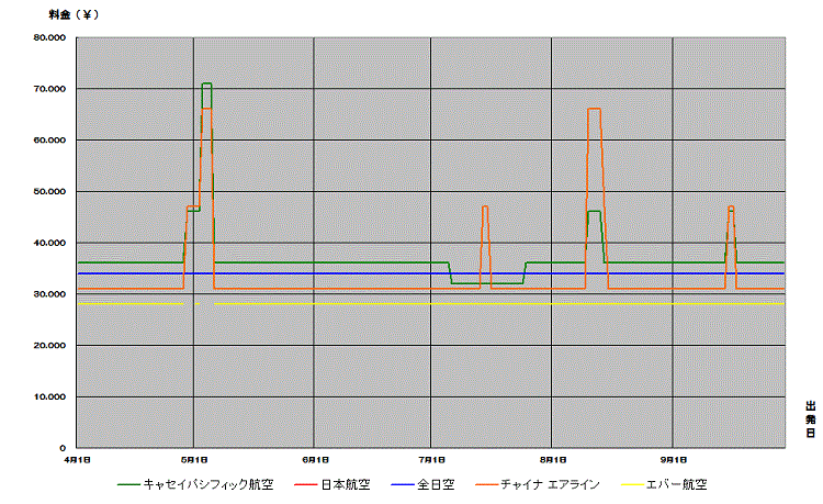 香港行き航空券が安い時期がわかる便利な相場チャート。2017上期価格推移グラフでいつが安いか確認できます。