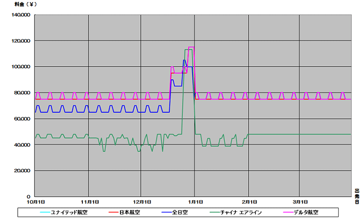 ハワイ、ホノルル行き航空券が安い時期がわかる便利な相場チャート。2015下期価格推移グラフでいつが安いか確認できます。