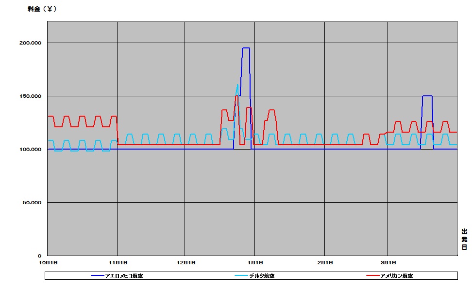 メキシコ、メキシコシティ行き航空券が安い時期がわかる便利な相場チャート。2016下期価格推移グラフでいつが安いか確認できます。