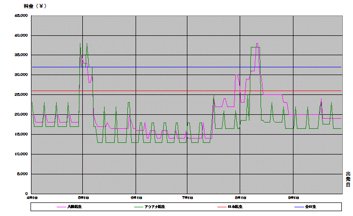 韓国、ソウル行き航空券が安い時期がわかる便利な相場チャート。2016上期価格推移グラフでいつが安いか確認できます。
