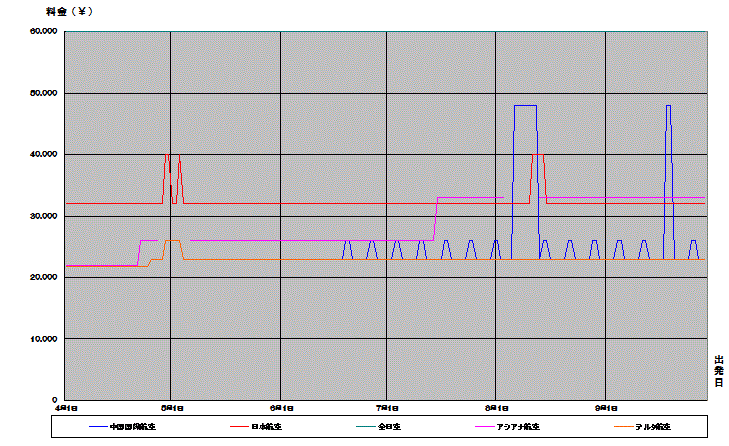 中国、上海行き航空券が安い時期がわかる便利な相場チャート。2016上期価格推移グラフでいつが安いか確認できます。