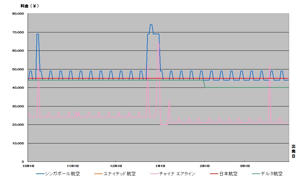 シンガポール行き航空券が安い時期がわかる便利な相場チャート。2016下期価格推移グラフでいつが安いか確認できます。