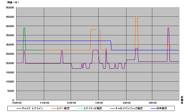 台湾、台北行き航空券が安い時期がわかる便利な相場チャート。2015下期価格推移グラフでいつが安いか確認できます。