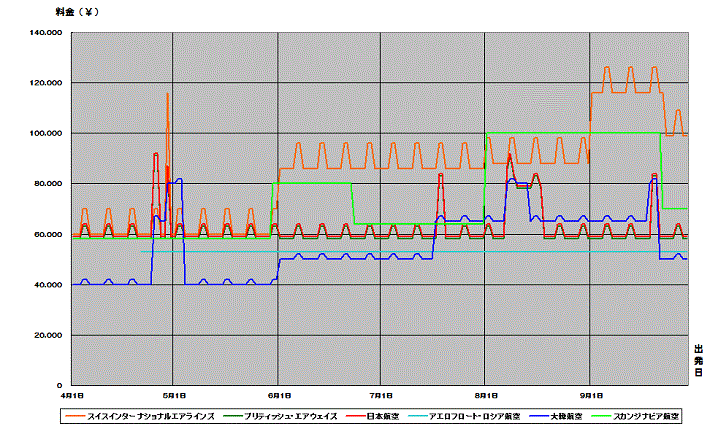 スイス、チューリッヒ行き航空券が安い時期がわかる便利な相場チャート。2015上期価格推移グラフでいつが安いか確認できます。