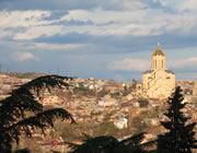 黒海の東に位置するグルジアの首都。三方を山に囲まれた坂の多い町で、「トビリ」はグルジア語で「温かい」という意味。トビリシの町ができる前の5世紀、この地に遊びに来た王様一行が温泉を発見し町をつくったという伝説に由来し、トビリシと名付けられた。市内にはムトクワリ川が貫通している。古来より、ヨーロッパ方面からユーラシアの内部への輸入品はムトクワリ川を利用した水運で運ばれ、トビリシはその中枢として栄えた。